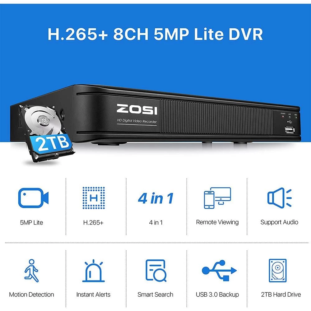 - 8CH 5MP Lite 4 In 1 DVR Security System: This 8 Channel 4-in-1 DVR supports TVI, CVI, CVBS, AHD cameras. It provides you the flexibility to add 8pcs 720P, 1080P, 3MP(12.5fps), 4MP(12.5fps), 5MP(12.5fps) CCTV Security Cameras