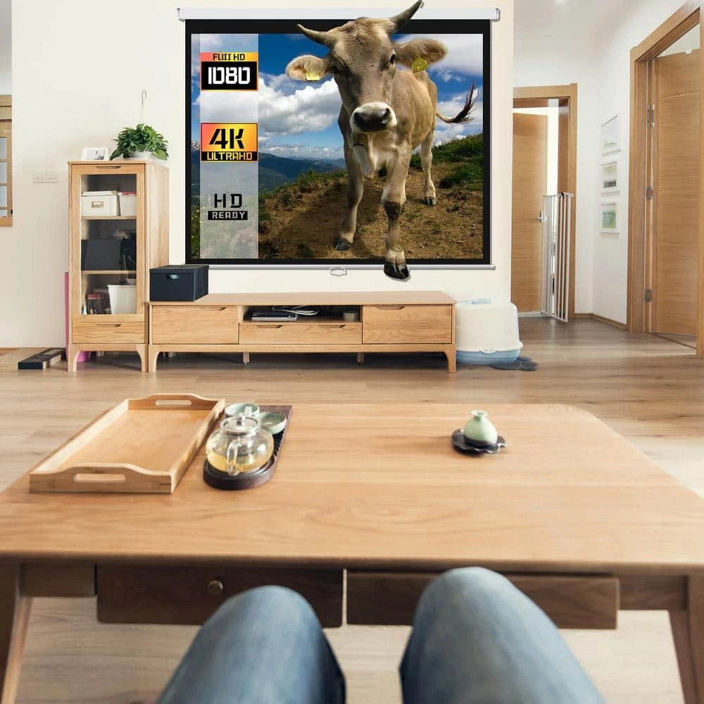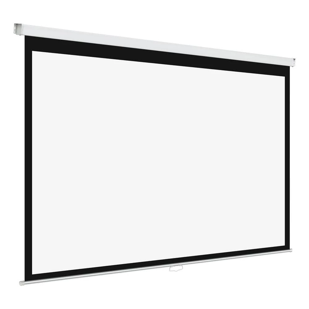 The 120 in. Projector Screen comes in a strong and elegant, modern aluminum housing with 2 plastic end covers. Using the self-lock mechanism, the screen can be adjusted quickly and easily to the size that is needed. It can easily be mounted on the wall in your home theater, school room, conference room, or restaurant.