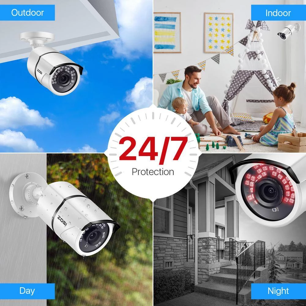 ZOSI surveillance systems are designed for your home and business with easy installation and operation.The advanced H.265+ video compression technology provide you more faster loading speed, 50% less storage space and lower resource/data consumption. The system features Full HD night vision, human detection, Instant email/APP alerts, customize each camera with 4 different recording modes, smart playback&searching, etc. With free ZOSI Smart App, you can keep tabs on what’s happening at your home or business and watch the high-quality video on your Smartphone/Tablet/PC.