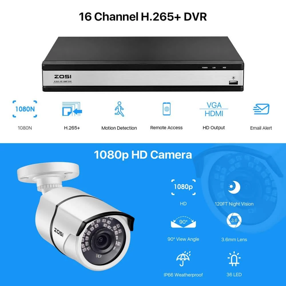 - H.265+ 16CH 1080P HD DVR: with the advanced H. 265+ technology, which could double the data compression ratio, keep the high quality video even with low bit-rate, it allows you to maximize storage space and enjoy ultra-long recording