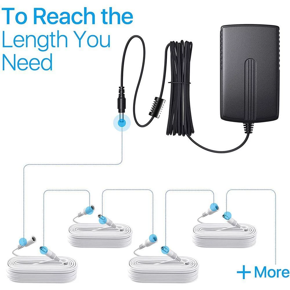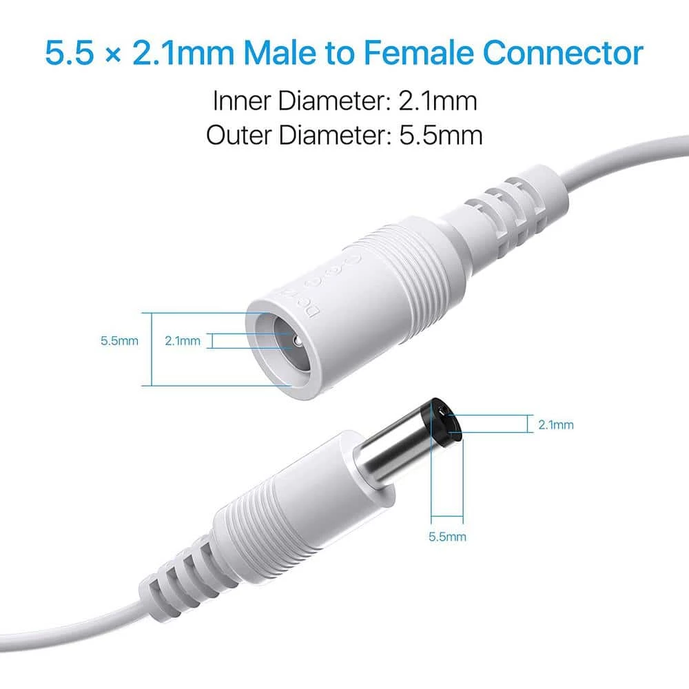 - Compatible with 12-Volt 2.1 mm x 5.5 mm power adapter: to extend the adapter cable for any brand IP security camera and CCTV security camera, standalone DVR, LED light strip and others that requires DC input and accept 12-Volt 2.1 mm x 5.5 mm plug