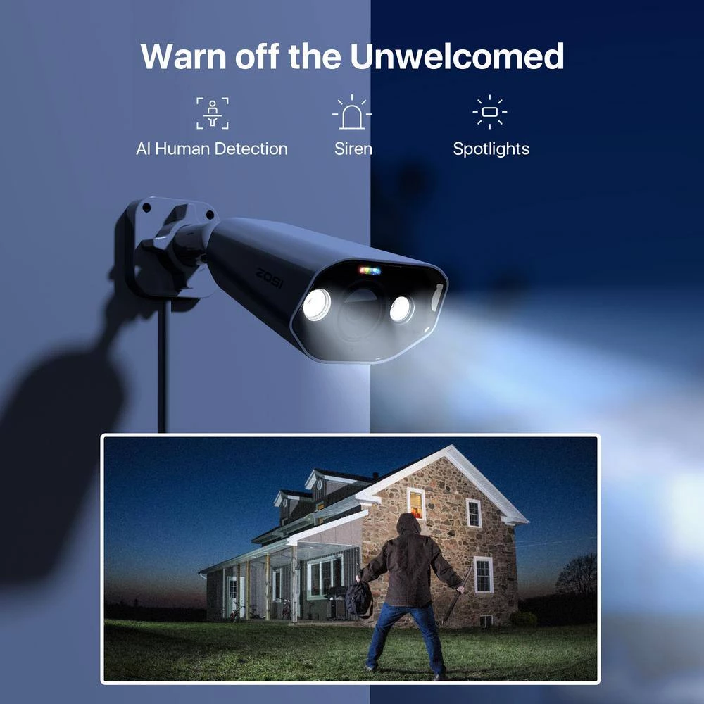 ZOSI surveillance systems are designed for your home and business with easy installation and operation.The advanced H.265+ video compression technology provide you more faster loading speed, 50% less storage space and lower resource/data consumption. The system features Full HD day&night, human detection, Instant email/APP alerts, smart playback&searching, 4 different customizable recording modes, etc. With free ZOSI Smart App, you can keep tabs on what’s happening at your home or business and watch the high-quality video on your Smartphone/Tablet/PC.