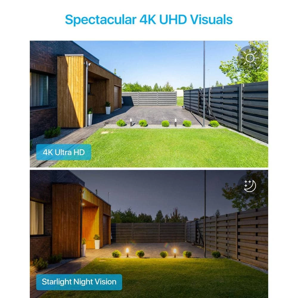- 4K 8.0MP ultra HD & color night vision: 4 times the resolution of 1080P, this Ultra HD 4K CMOS Image Sensor allows the camera to capture more light,which improves color,contrast,and low-light performance. in 4K resolution.Record everything with sharper details with the high Pixel count and be able to digitally zoom into far away objects without losing any quality