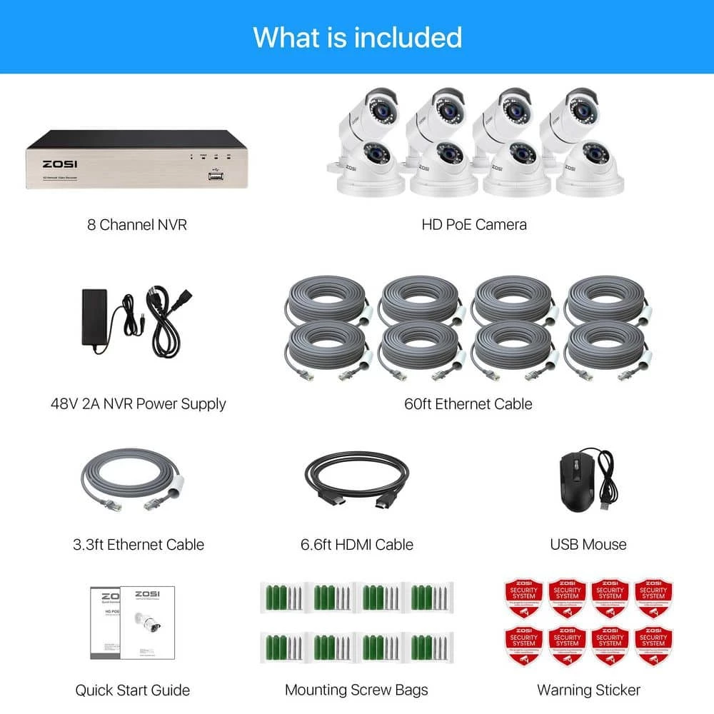 - Simplify PoE installation power over ethernet means the IP cameras connect to the NVR with a single cable that transmits both data and power, no need to connect power cable, lower risk of electric leakage and easy to set up, this literally simplified the installation and reduced costs