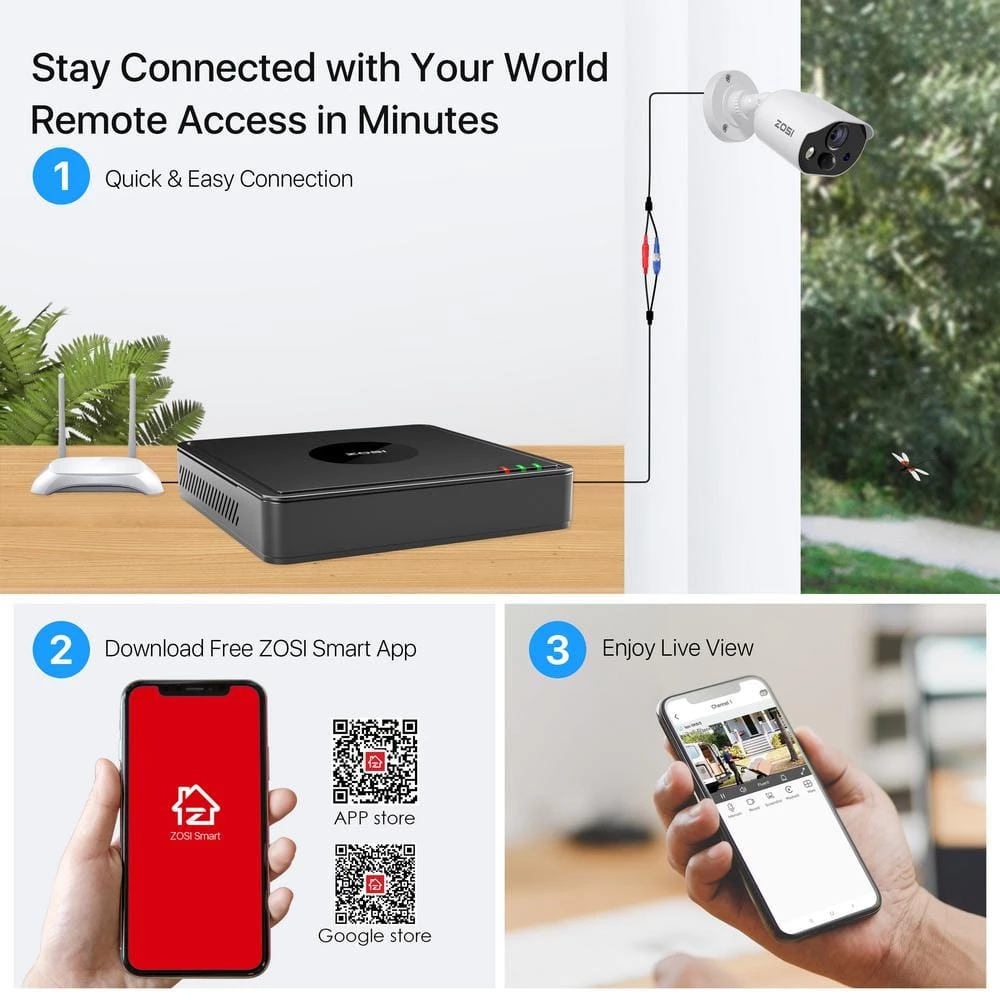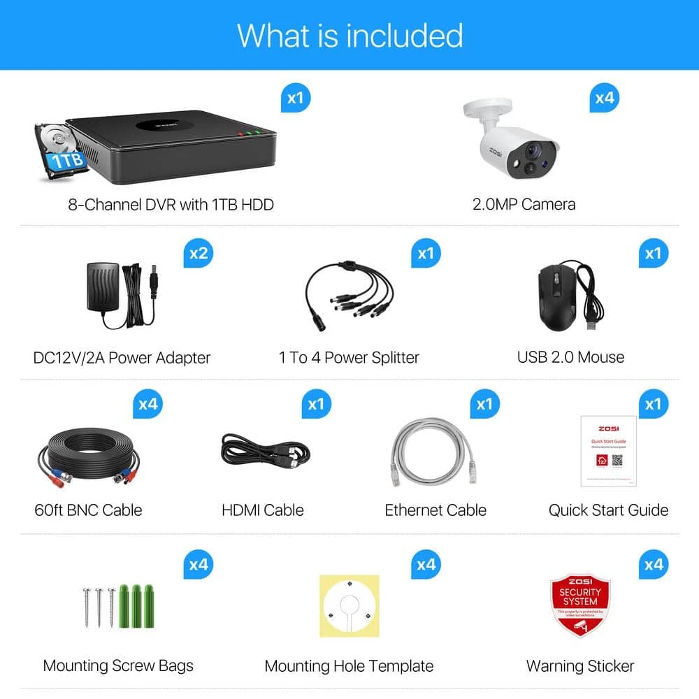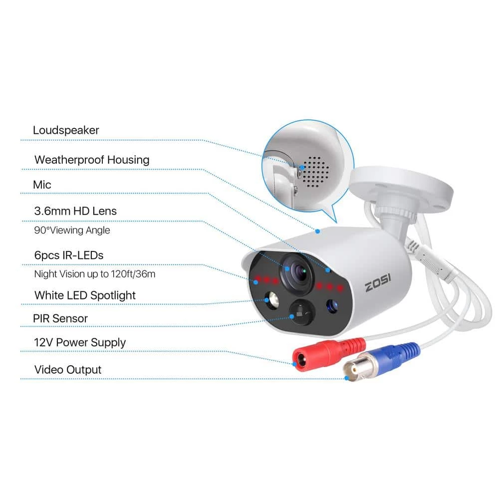 8-Channel 1080p 1TB DVR Security Cameras System with 4 2MP Wired Spotlight Cameras, 1-Way Audio, PIR Human Detection by ZOSI