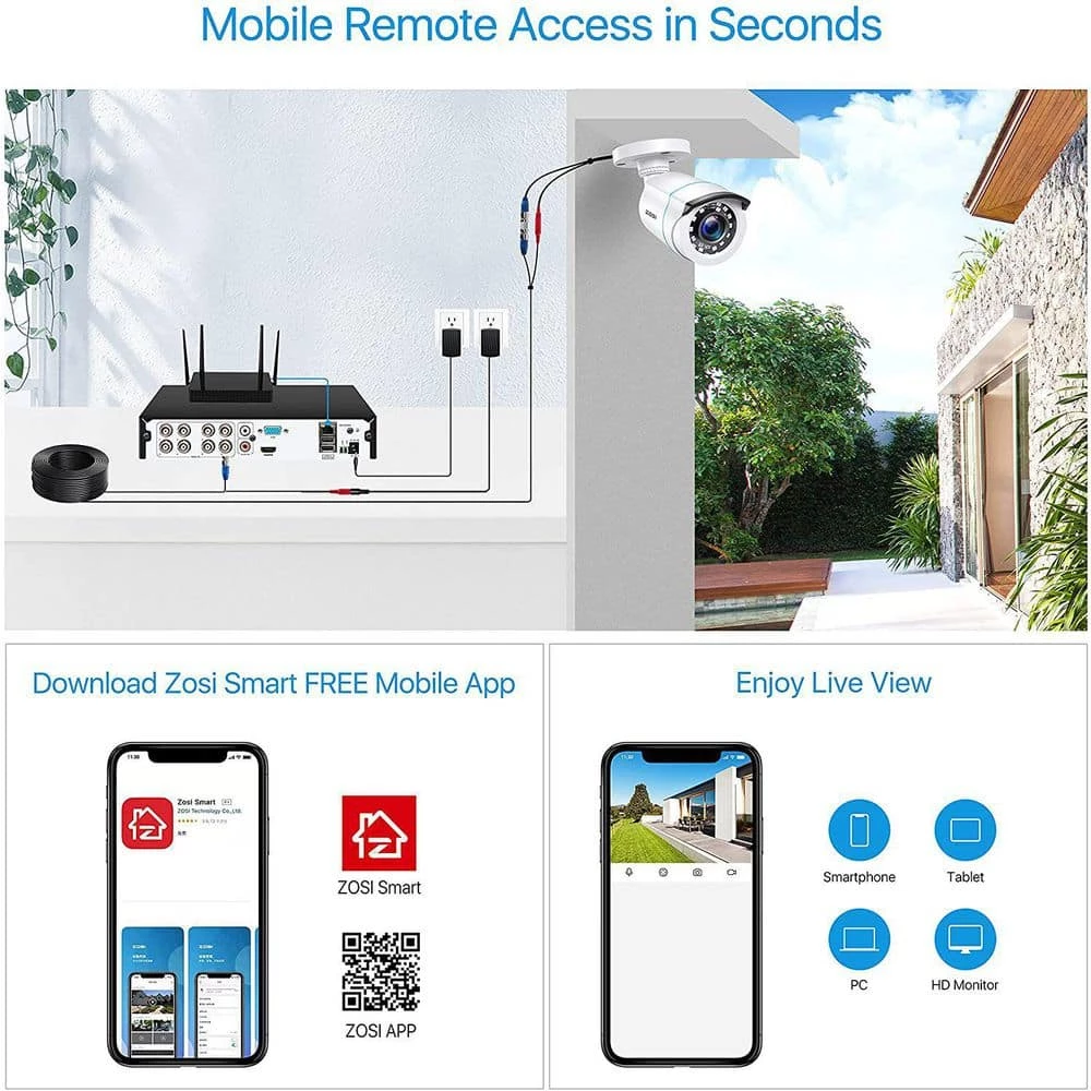 - Local or remote access, playback anytime and anywhere: view and control your security system locally by connecting the system to a monitor without internet, or via free ZOSI client software on tablet, PC, or via Smartphone APP (ZOSI Smart ) on mobile devices remotely, you can also playback significant evidence or funny videos and search by different-days, hours or-minutes
