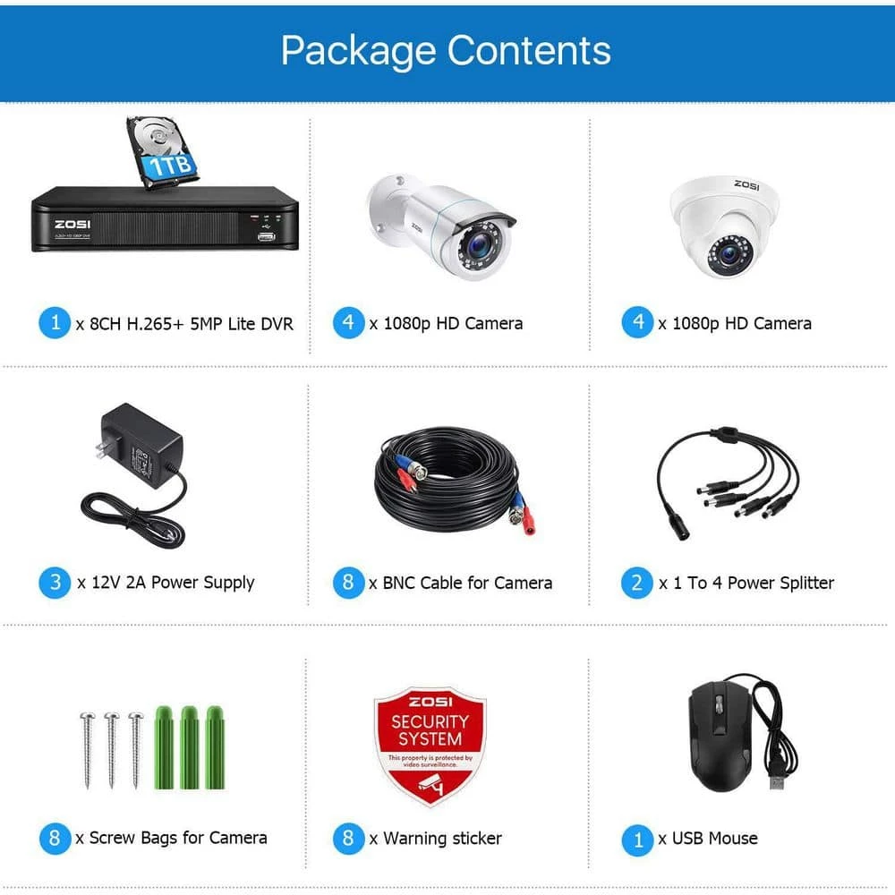 ZOSI surveillance systems are designed for your home and business with easy installation and operation.The advanced H.265+ video compression technology provide you more faster loading speed, 50% less storage space and lower resource/data consumption. The system features Full HD night vision, human detection, Instant email/APP alerts, customize each camera with 4 different recording modes, smart playback&searching, etc. With free ZOSI Smart App, you can keep tabs on what’s happening at your home or business and watch the high-quality video on your Smartphone/Tablet/PC.