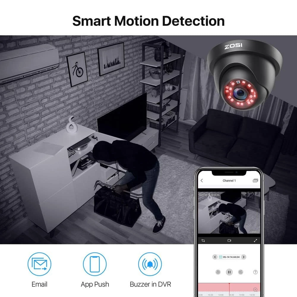 ZOSI surveillance systems are designed for your home and business with easy installation and operation.The advanced H.265+ video compression technology provide you more faster loading speed, 50% less storage space and lower resource/data consumption. The system features Full HD night vision, human detection, Instant email/APP alerts, customize each camera with 4 different recording modes, smart playback, etc. With free ZOSI Smart APP, you can keep tabs on what’s happening at your home or business and watch the high-quality video on your Smartphone/Tablet/PC.