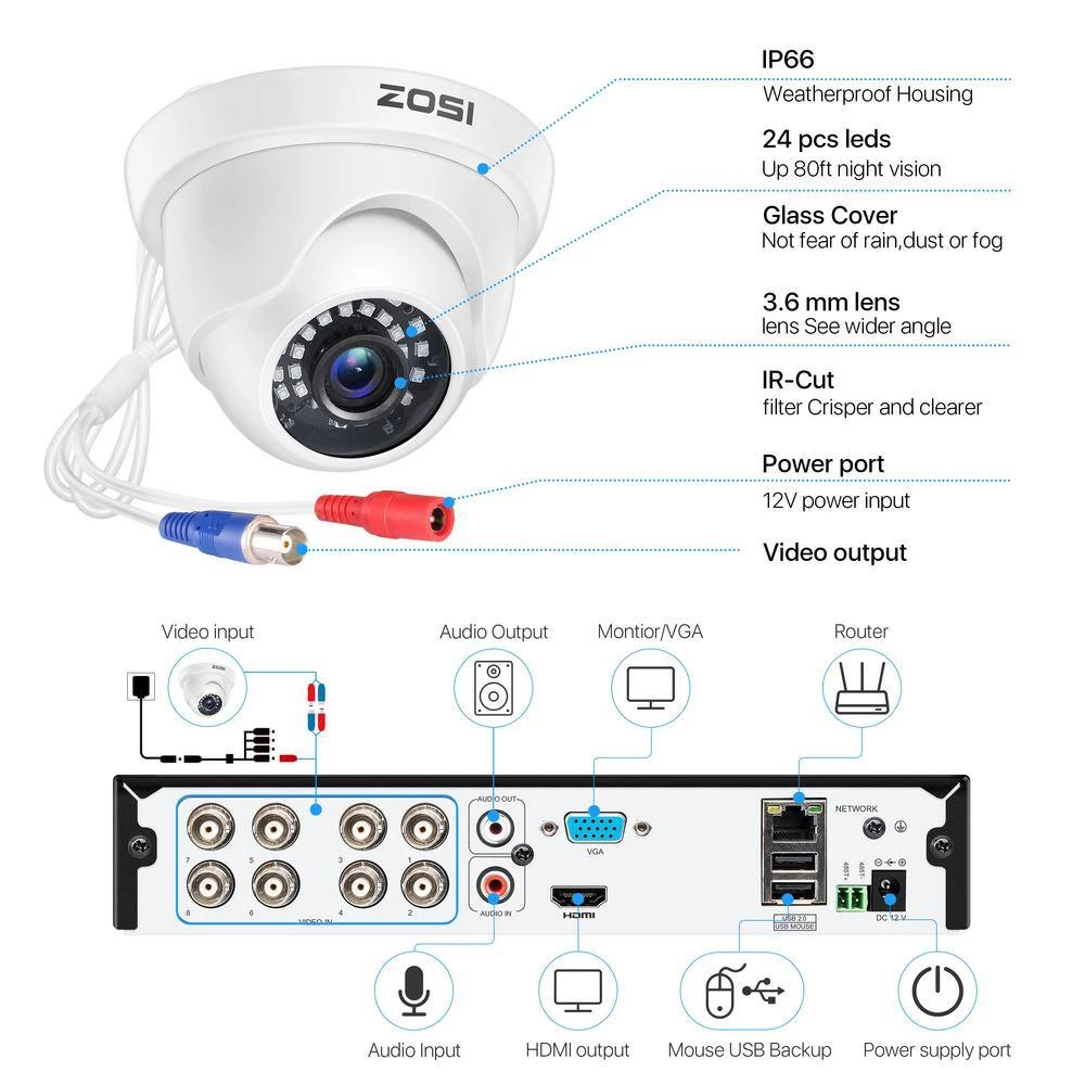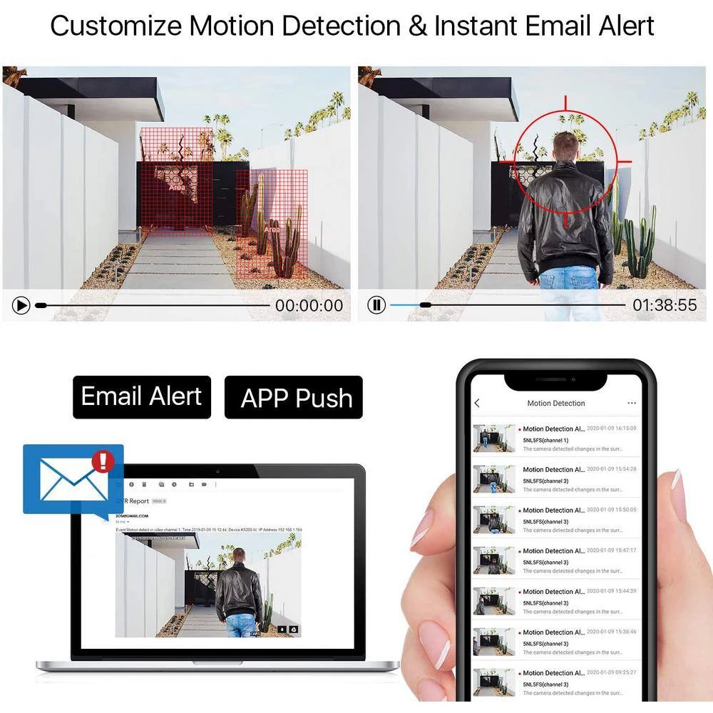 ZOSI surveillance systems are designed to meet your home and business needs with easy installation and operation. The advanced H.265 plus video Compression technology provide you more faster loading speed, 50% less storage space and lower resource/data consumption. The system features Full HD night vision, human detection, Instant email/APP alerts, customize each camera with 4 different recording modes, smart playback, etc. with this HD security system, you can keep tabs on what’s happening at your home or business and watch the high-quality video on your Smartphone/Tablet/PC.