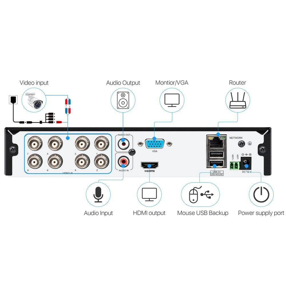 - 5MP-Lite Extendable system overview: exclusive 8 channel 5MP lite DVR recorder paired with 4 weatherproof 1080p bullet cameras with 120 ft. night vision and 105° view angle (it allows you to add 4 more cameras) 60 ft. BNC plus DC CCTV cabling provides both video and power to your cameras, more stable and reliable than wireless security system