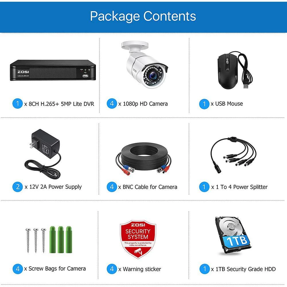 ZOSI surveillance systems are designed for your home and business with easy installation and operation. The advanced H.265 plus video compression technology provide you more faster loading speed, 50% less storage space and lower resource/data consumption. The system features Full HD night vision, human detection, Instant email/APP alerts, customize each camera with 4 different recording modes, smart playback and searching, etc. with free ZOSI Smart App, you can keep tabs on what’s happening at your home or business and watch the high-quality video on your Smartphone/Tablet/PC.