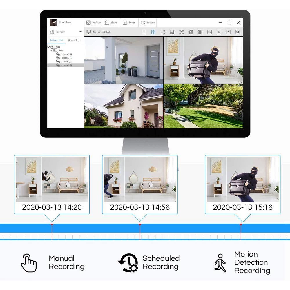 - Customize each camera with different record modes: ZOSI DVR offers 4 kinds recording modes to meet your needs: 24/7 recording continuously, scheduled recording times, motion detection, recycle record, you can customize each camera with different recording modes