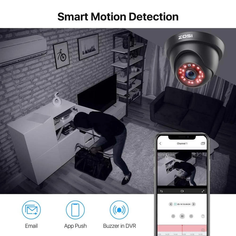 - ZOSI self-developed H.265 plus video coding technology focus on a larger storage space and better image quality, the technology improve compression ratio on the basis of H.265 standard, save about 80% storage compared with H.264, which can effectively store resources and provides excellent smooth viewing experience