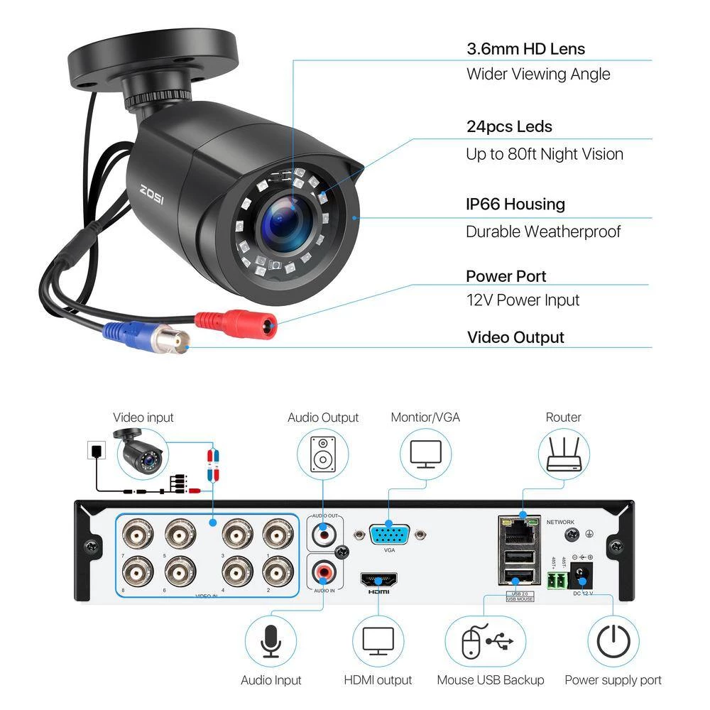 - Different from other brands sharing one power adapter for both DVR and security cameras in the market, we provide power adapters for DVR and also security cameras, which is more stable and reduce resources consumption during transmission