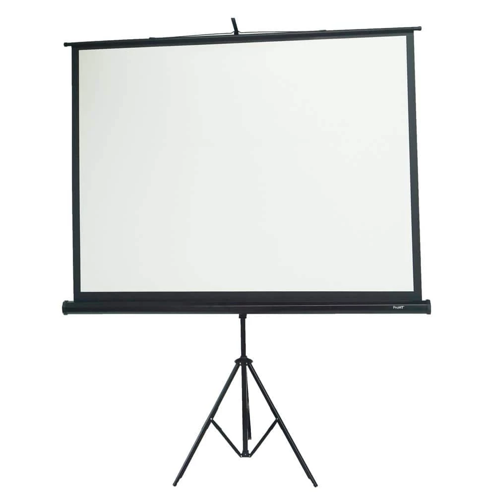 proHT has been in the computer accessory business for over 28 years. The 84 in. Projector Screen features unique pull stop-start features. It comes with a strong and elegant steel square case with two plastic end covers. Using the self-lock mechanism, the screen can be adjusted quickly and easily to the size that is needed. It can easily be mounted on the wall in your home theater, school room, conference room, or restaurant.