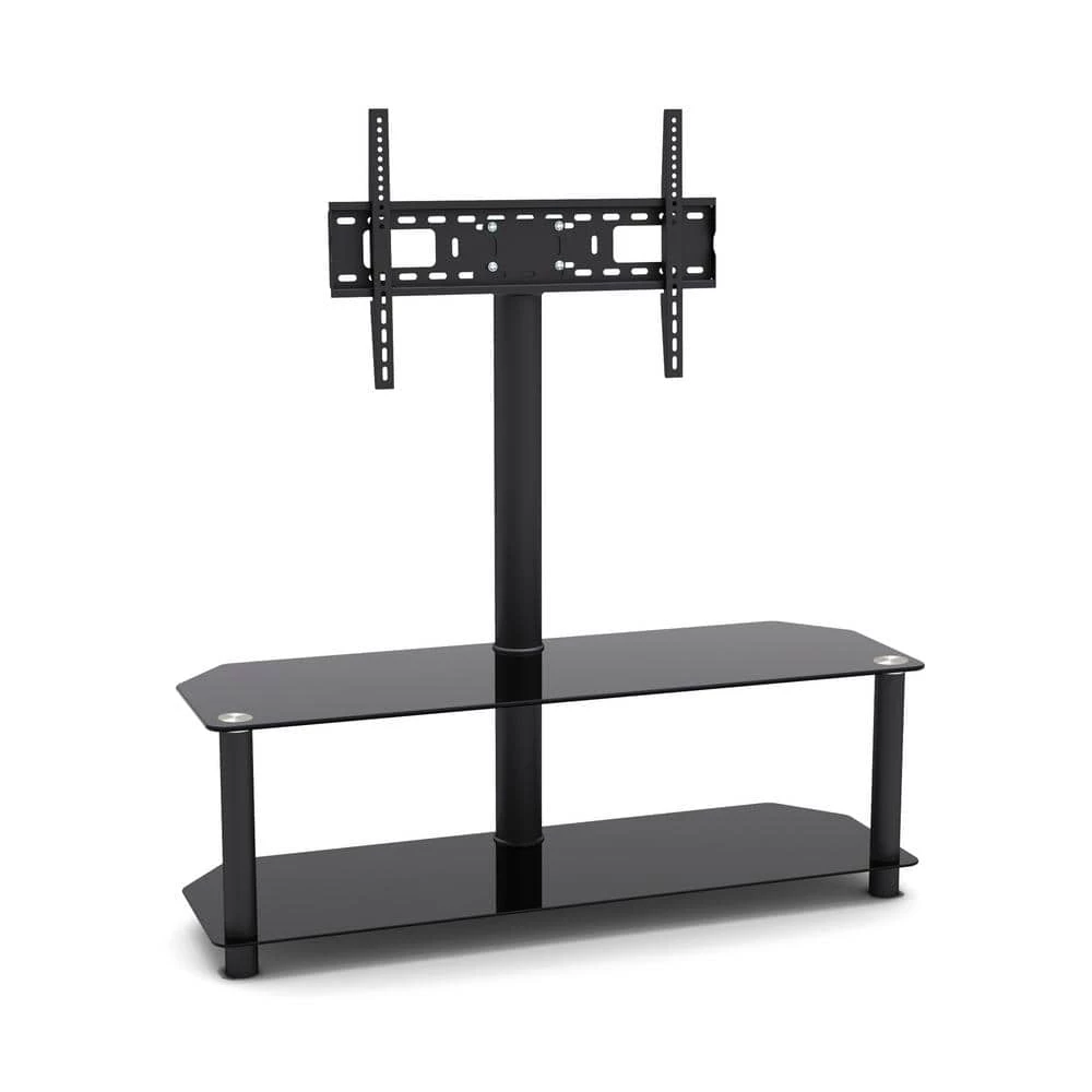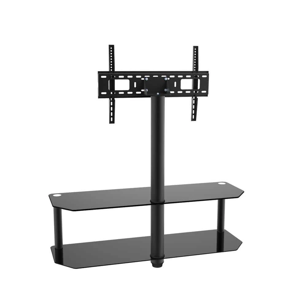 The Media Component Shelf features thick tempered glass and a powder coated steel frame for durability and lasting beauty. The high-quality construction and open style maximize airflow and provide the enhanced strength needed to handle the largest televisions. A cable management system is located at the rear of the stand to hide those unsightly cables from view. The integrated TV mount supports flat panel TVs up to 60 in. with a maximum weight of 88lbs. Quickly assemble with no tools required.