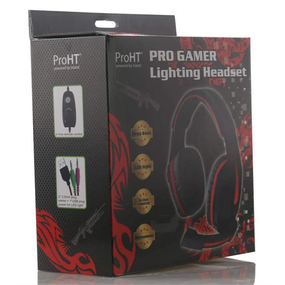 Designed specifically for gamers, get your game on with the proHT PRO GAMER headset. Get the drop on your opponents and maintain the upper hand with superior, crystal clear sound quality that helps you maintain positional awareness in-game. Designed with comfort and ease of use in mind, the PRO GAMER headphones come equipped with in-line mic and volume controls, in addition to comfortable leather bands and ear cups, so you won’t have to worry about aching ears again. But these headphones don’t just function well; they are aesthetically pleasing as well. With the black and red design and the red backlighting, you can be sure that the PRO GAMER headphones will look as good as they sound. If you take your game seriously, then the proHT PRO GAMER headphones are for you.