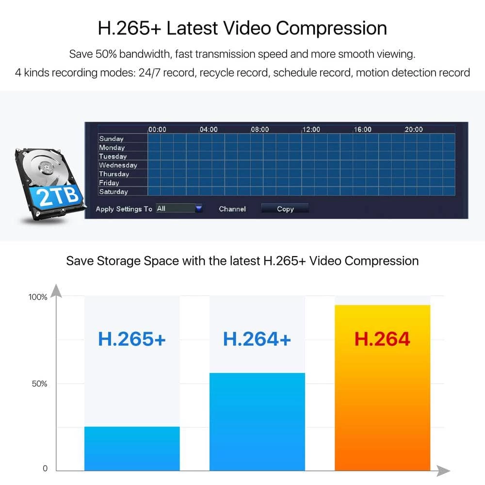 ZOSI surveillance systems are designed for your home and business with easy installation and operation.The advanced H.265+ video compression technology provide you more faster loading speed, 50% less storage space and lower resource/data consumption. The system features Full HD night vision, human detection, Instant email/APP alerts, customize each camera with 4 different recording modes, smart playback&searching, etc. With free ZOSI Smart App, you can keep tabs on what’s happening at your home or business and watch the high-quality video on your Smartphone/Tablet/PC.