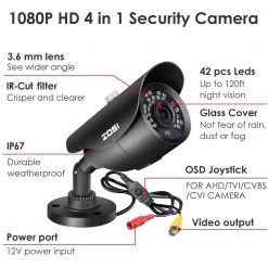Wired 1080p Outdoor Bullet Security Camera 4-in-1 Compatible for TVI/CVI/AHD/CVBS DVR by ZOSI