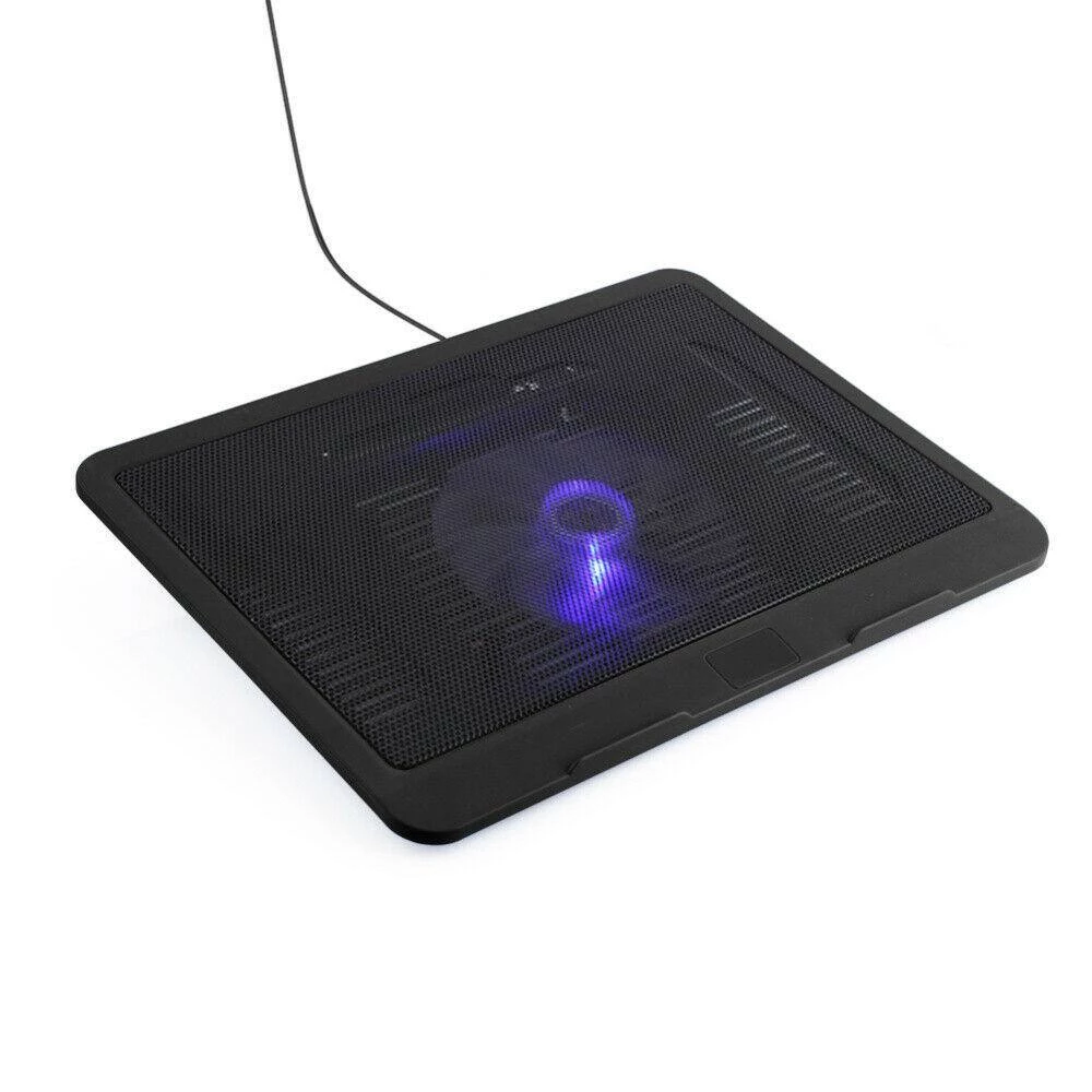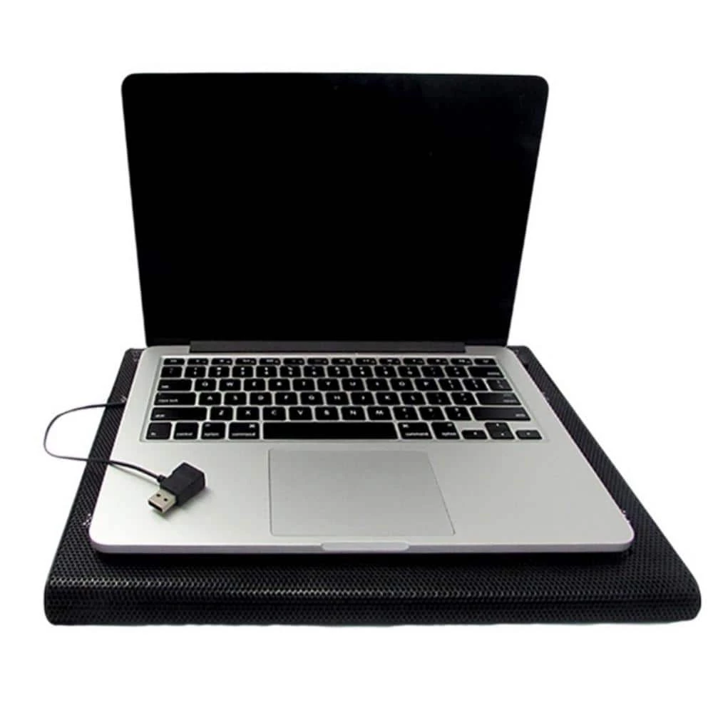 - Quiet laptop notebook cooler cooling pad stand with 2 USB powered fans, fits 12 in. -16 in.