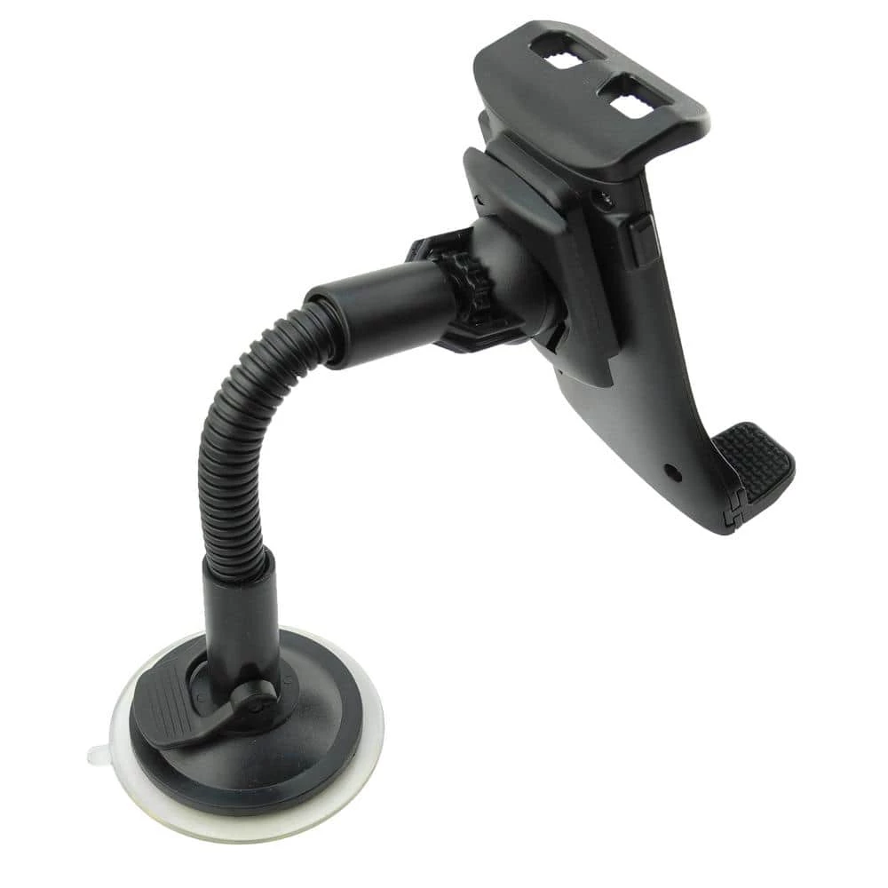 The Phone or Tablet Holder with Cradle and Swiveling Mount is designed for simple attachment to your Windshield or Dashboard. Built with a strong grip arm, the stand holds your device securely and the adjustable mount frame is compatible with most cell phones, including Android, Apple, Blackberry and Microsoft phones, some Tablets and GPS devices. A swivel mount that is simple to operate, offers vertical and horizontal viewing angles, guaranteeing that your smartphone will remain in your preferred position.