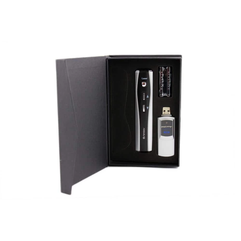 SANOXY multifunctional 2.4G mouse presenter-Smart Wireless presenter with mouse function and pointer Main Functions: Pointer, wireless mouse and wireless keyboard shortcut key Features: USB plug and play, no driver required. System: WINDOWS98/2000/ME/XP Linux and Mac OS RF technology. Control distance: up to 25 m Wavelength: 650nm FDA APPROVED Safety Warning: Be warned that 2.4GHz pointers are not toys and should not to be used by children; A pointer should not be directed at people or animals.