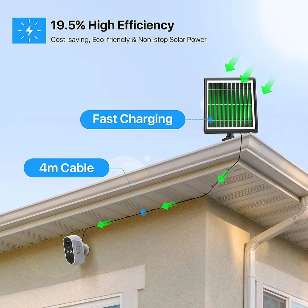 - Non-stop solar power — no need to waste time to take off the battery and charge it with the renewable and abundant solar power, this solar panel could keep your battery camera work well everyday