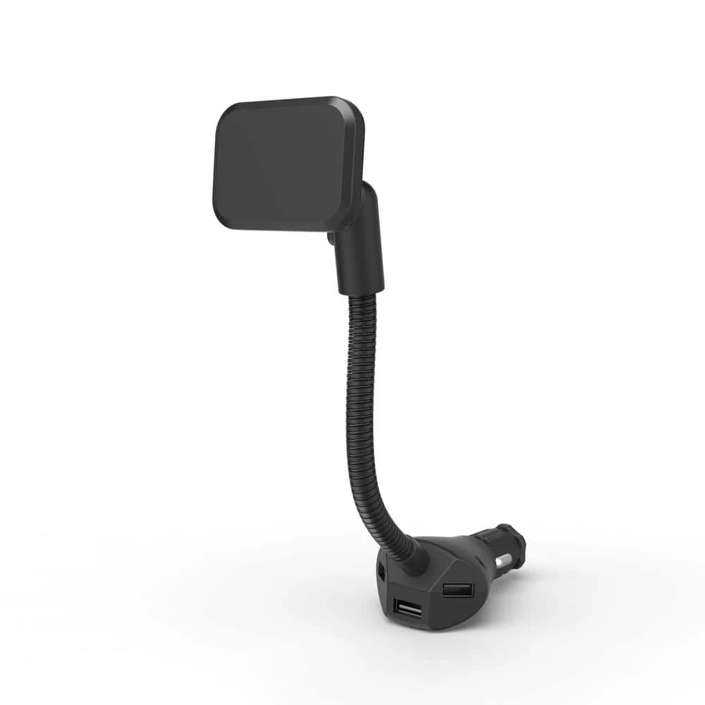The Universal Cigarette Lighter Magnet Phone Mount is designed with three USB charging ports for charging multiple devices. Maximum output is 5.5 Amp divided into 2.4 Amp, 2.1 Amp and 1 Amp. The powerful magnet will hold any smartphone, including Android, Apple, Blackberry and Microsoft devices. Simply plug the Phone mount into the cigarette lighter, place the magnet on your phone or phone case and you are done. The Strong material is designed to allow the user to place their phones with quick one hand use and the rubber oil finish gives a sleek look to this accessory. It features 360-Degree Rotation, which guarantees that your smartphone will remain in your preferred position.